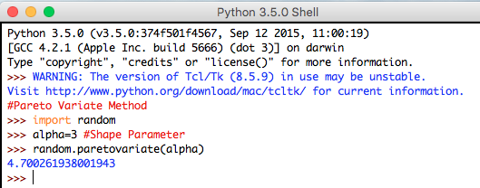 Syntax: random.paretovariate(alpha)