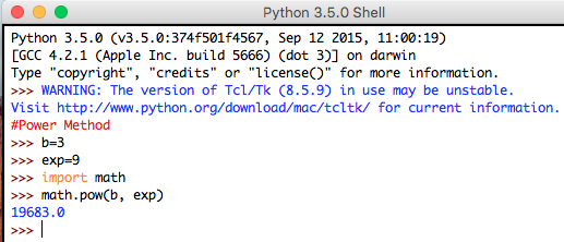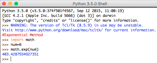 - Exponential Method: This method returns the exponential of the input number specified. It consists of one parameter and explained below: