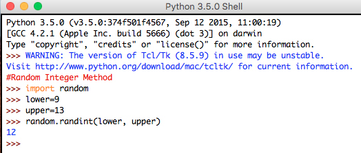 Syntax: random.randint(lower, upper)