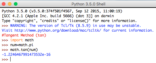 Syntax: math.tan(num)