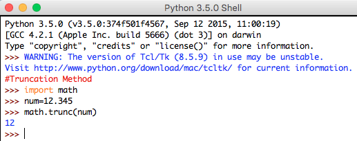 Syntax: math.ceil(num)