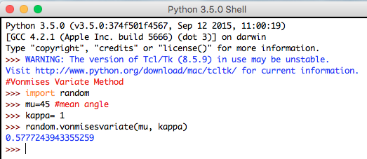 Syntax: random.vonmisesvariate(mu, kappa)
