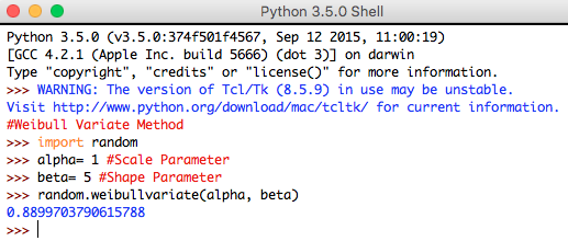Syntax: random.weibullvariate(alpha, beta)