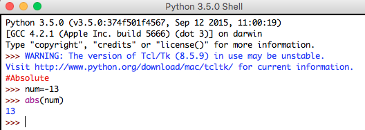 Syntax: abs(num)