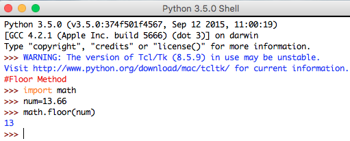 Mathematical Functions & Constants: Python provides various functions to perform mathematical functions, they require additional module "math" to be imported. They are explained below: