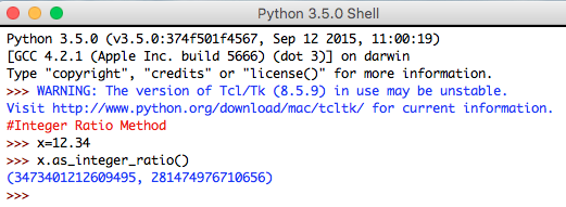 - Integer Ratio Method: This method returns the pair of integers whose ratio is exactly equal to the original floating-point number along with a positive denominator.