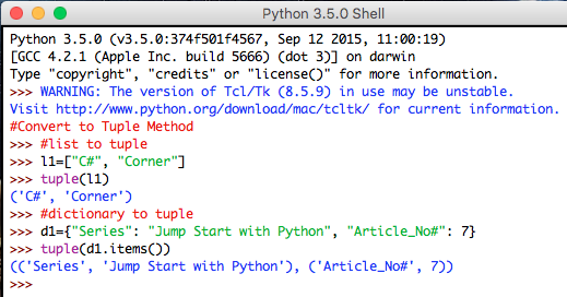 - Convert to Tuple Method: This method is used to convert a sequence - list or dictionary to a tuple. It consists of one parameter and it is explained as below: