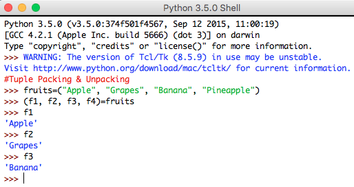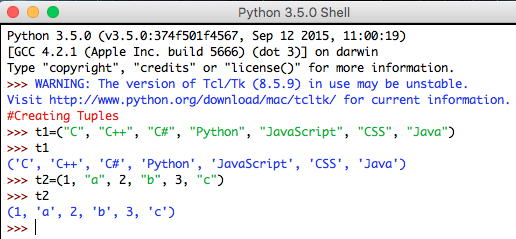 - In Python, any set of elements that are declared as comma-separated values (items) are considered as tuples.