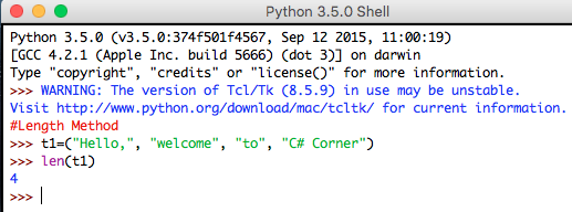 - Length Method: This method is used to determine the number of elements or length of a tuple. It consists of one parameter and it is explained as below: