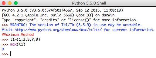 - Maximum Method: This method is used to determine the maximum element in a tuple. It consists of one parameter and it is explained as below:
