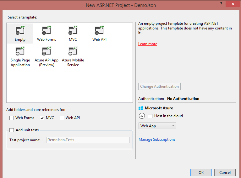 Step 2: After this a window will pop up from Template, select Empty and then select MVC as in the following screenshot,