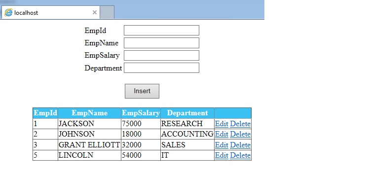16. Now, delete EmpId 4 Record.