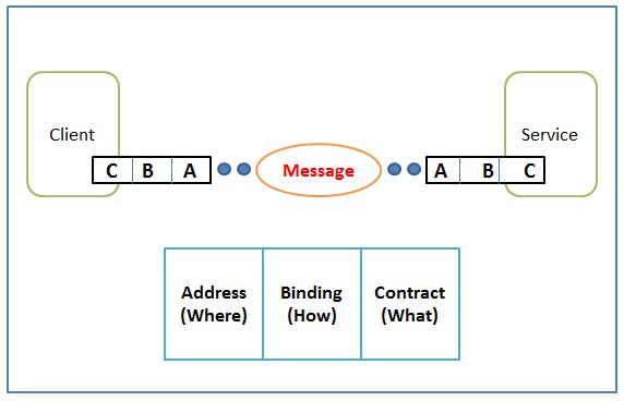 An endpoint is composed of an address, a binding and a contract known as the ABCs of endpoints as shown in the figure.