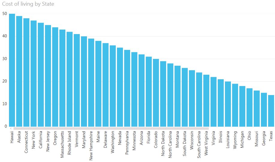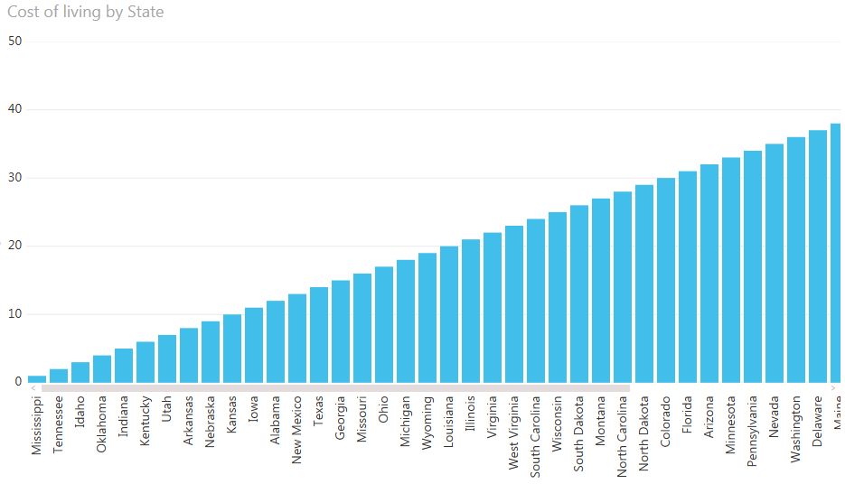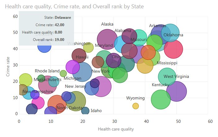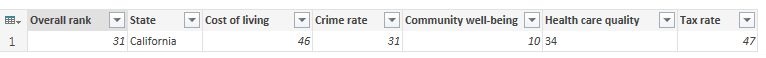Now if we click on any of the rows from the NewColumn list we will find all the information about that state at a single place including State Name, State Code, Health Care Quality Crime Rate, Overall Rank, Cost of Living, Tax Rate and Community well-being.