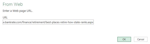 Select the New Source option from the Home ribbon tab and again select Web as a new data source and paste the following URL.