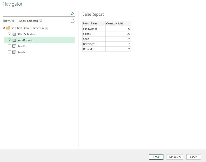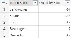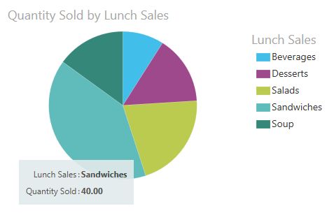 The preceding Pie Chart will show us the quantity of each item sold for lunch.