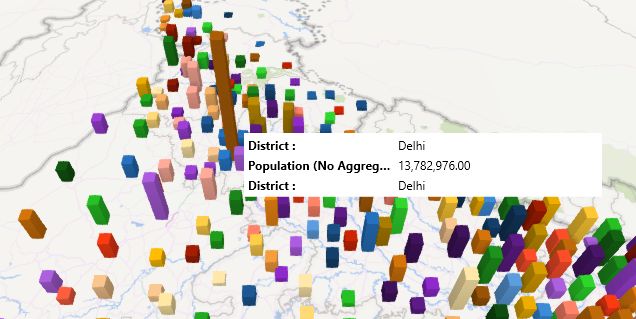 If we zoom in further we will see the city with the maximum population is Delhi.