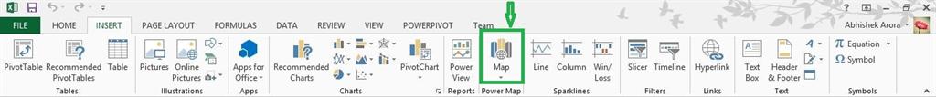 Open your Excel sheet and select your data table and click on Insert -> Map.