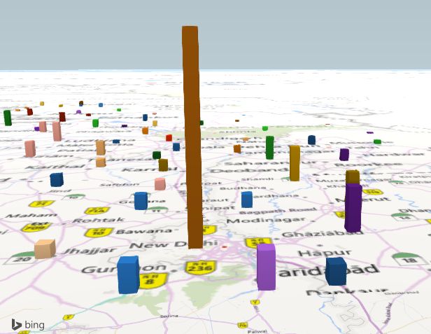 Microsoft Power Map for Excel is a three-dimensional (3-D) data visualization tool that lets you look at information in new ways. A power map lets you discover insights you might not see in traditional two-dimensional (2-D) tables and charts.With Power Map, you can plot geographic and temporal data on a 3-D globe or custom map, show it over time and create visual tours you can share with other people.