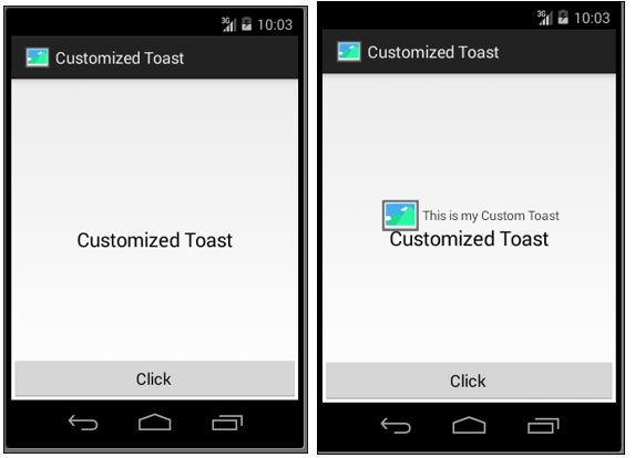 Earlier, we had simply es a simple string as a toast message, but this time we will inflate a XML file as the toast's content.