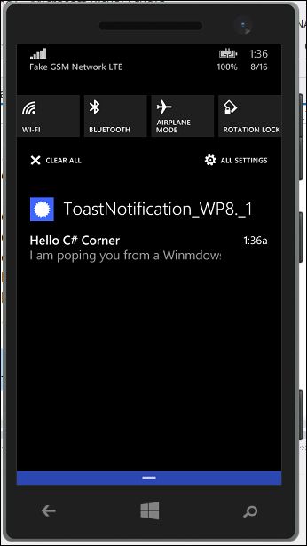 It's a small demonstration of Toast Notification that we have implemented with the help of the Windows Phone 8.1 API.