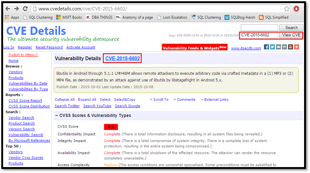 So if someone says what is CVE-2015-6602, then we can easily describe it, that it is a threat ( Common Vulnerability Exposure ) which came in the year 2015 having CVE-ID 6602. By putting CVE-2015-6602 on the website: www.cvedetails.com you can get more information, resources and links for the particular CVE. I hope that now CVE-YYYY-NNNN is not a new thing for you. You are aware and you can answer if someone asks.