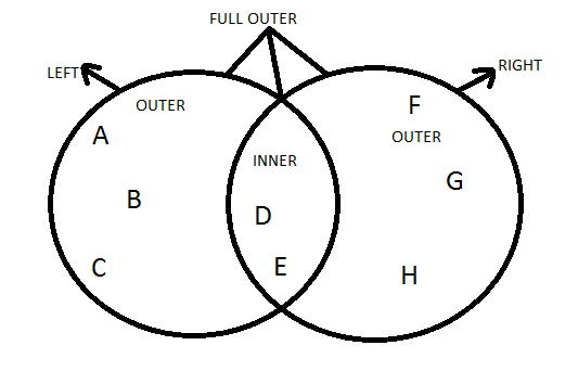 - Full Outer Join {A, B, C, D, E, F, G, H}