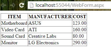 Once you have added the web from, the next step is to add a data grid control to your web form (just simply drag and drop from the Toolbox) as shown below.