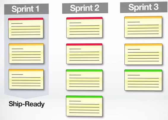 Sprints are short duration milestones that allow teams to tackle a manageable chunk of the project and get it to a ship-ready state. We split it out the release backlog into several sprint backlogs as shown below.