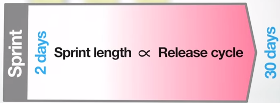 Figure 25Sprints generally range from a couple of days to as much as 30 days in length depending on the product release life cycles. The shorter the release life cycles, the shorter each sprint should be.