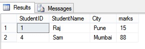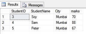 Here, [A-D] indicates that the first letter can be A,B,C or D. And, the first letter should be followed by 'elhi'. In our case, we will get the details of the Student who belongs to Delhi.