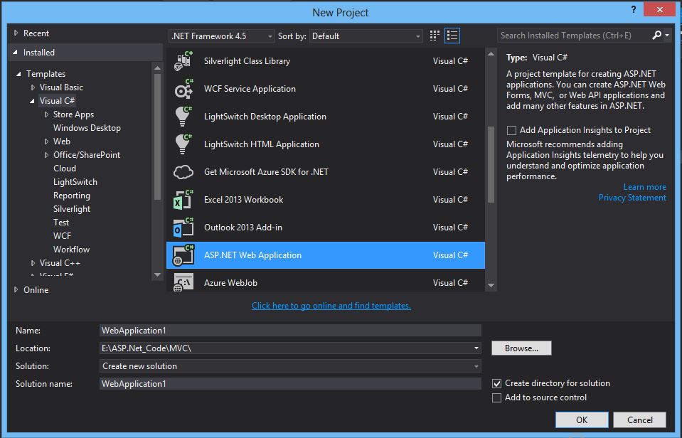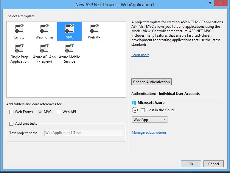 Click on MVC as per the above image and click ok. Your MVC Project has been created. You can run the project which will show you a sample template of MVC project. But we create our own custom Page.