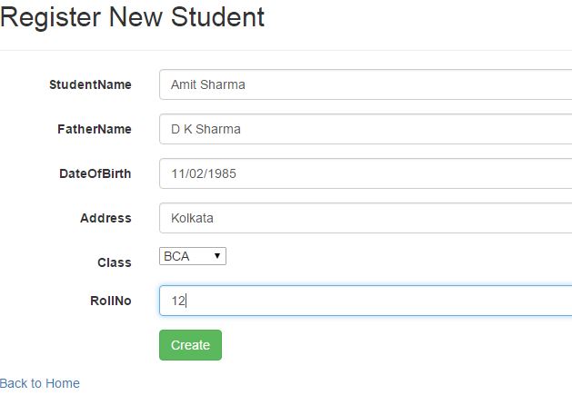 Actually, we want to create a Student Registration form. For this, first we need to define the student model class. So we will add a Student Class under Model folder and define the student class.