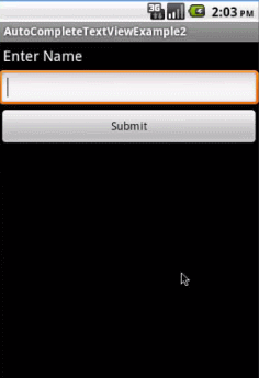AutoCompleteTextView is an Editable TextView for displaying suggestions when the user starts typing in the control. The Suggestions are displayed in a drop down menu and when the user selects the item from the drop-down list, the selected text is displayed in a TextView. Before starting, I suggest you read my previous articles in this series.