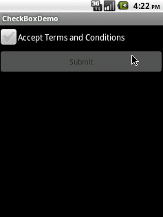 Set the text of the CheckBox as Accept Terms and Condition and the Button's text as Submit.