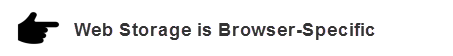 One of the Important points is that Web Storage is browser-specific. Let's understand that with an example. Suppose the user visits your site using Chrome, then any data that was stored to Chrome's Web Storage Store is available with the Chrome browser but not with other browsers. If the user revisits your site with a different browser, then the data saved within Chrome's Web Storage is unavailable in the other browser. So, Web storage is browser-specific and each browser's storage is separate and independent.
