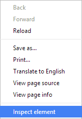 1. Right-click in the body of the Web Page and then click on Inspect Element. (You can also get the same from "Tools" -> "Developer Tools".)