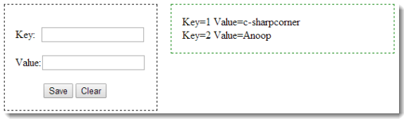 - In this example, we have taken two divs with id (box1 and box2). box1 contains textboxes and buttons whereas box2 is used for displaying the data from localStorage.