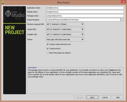 The Action Bar was introduced in version 3.0. You can use the Action Bar using the Sherlock Library on Android devices version 1.6. The activity populates the action bar in the onCreateoptionmenu() method. We define the action for the action bar inside the XML file. The MenuInflator class allows inflation of actions defined in an XML file and adds them to the ActionBar.