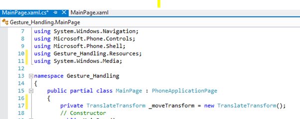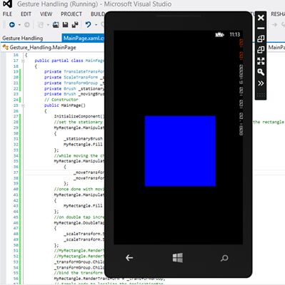 This is a simple example for gensture handelling in Windows 8 Phone. This basic example will provide an idea to implement and use the gesture.