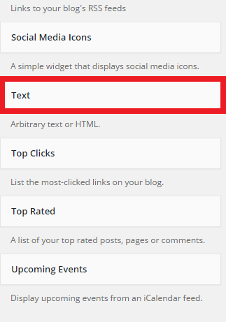 Find the widget labeled "Text", and drag it to your sidebar or footer. The location is entirely up to you. (yeah, that too!).
