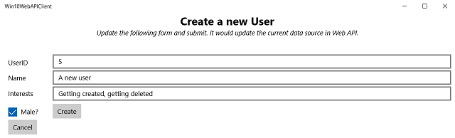 Creating the userWhen creating, the form will be empty. We will fill in the details and then we will send those details, using HttpClient, to the API.