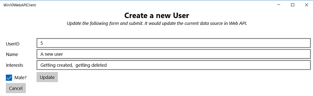 This way, these requests are sent to the server, mapped to an action and then executed. The response is then streamed to a client over the network that then renders it. Ok, enough of the API, now let us consider writing the client application in the Windows 10 framework.