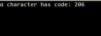 Let us now try Greek letters, the first one in the row, alpha. If we execute code similar to the preceding and replace the "a" with alpha, you will see the following result: