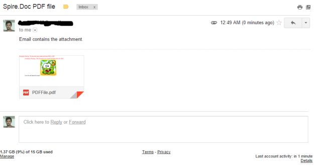 The email with the attachment generated at runtime in PDF format using the Spire.Doc library.