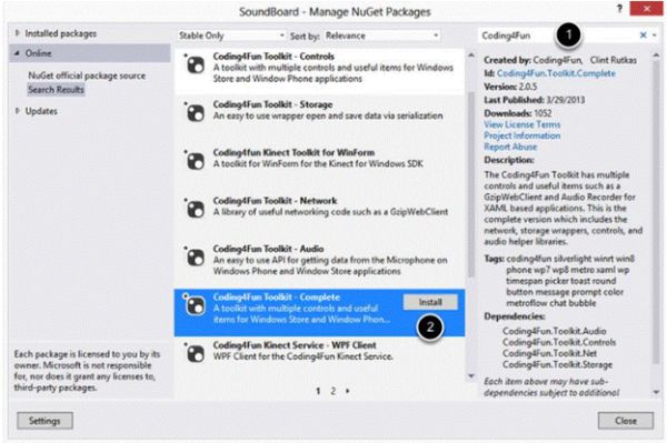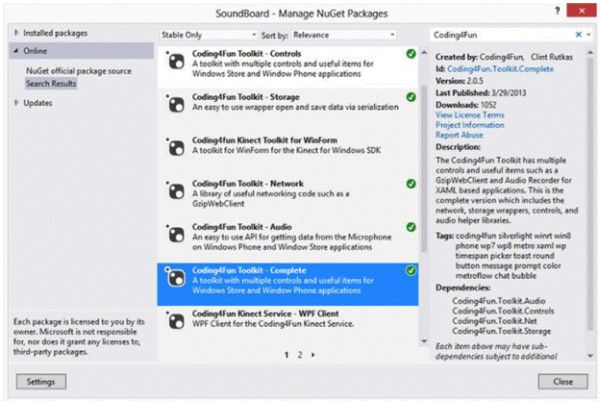- In the search box, search for the Coding4Fun Toolkit.