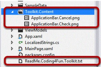 You will also see a new folder named Toolkit.Content and a text file named ReadMe.Codding4Fun.Toolkit.txt will also be added as in the following: