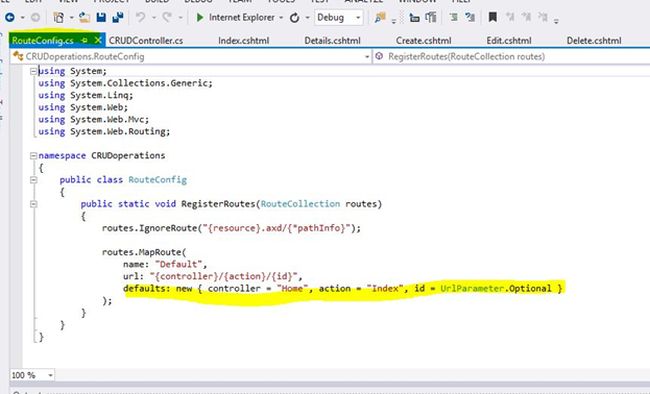 On clicking Route.Config.CS it will redirect you to that window (below). You need to make some changes in that page such as: