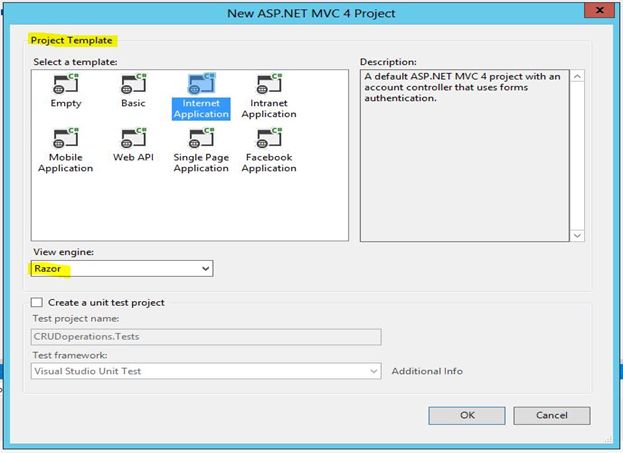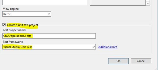 Then after View Engine there is an option for Create a Unit Test Project, this option is for creating a step-wise unit test for your project. (Microsoft provides that functionality in the default in MVC. It's not mandatory to create a unit test project but in my case I am using it.)