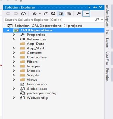 From these options select Solution Explorer, click CRUDoperations, just click on that and you will get a view of this window.